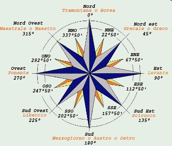 L’angolazione tra un un vento ed un altro è di 45°. Tale angolazione prende il nome di Ampiezza del Vento.